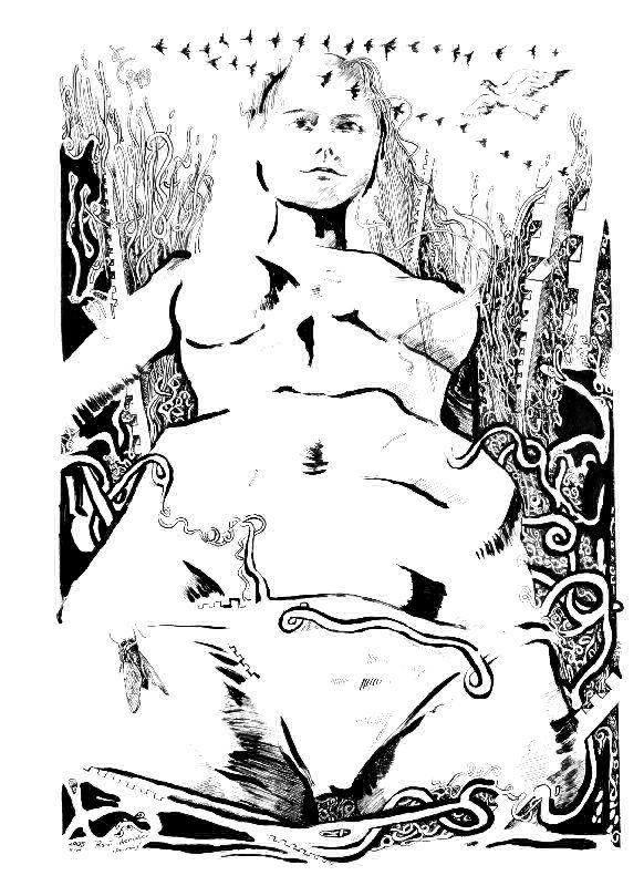 jestem to zawsze rysuję. Moje rysunki można podzielić na dwie grupy: wielkoformatowe oraz szkicowniki. Prezentowane wybrane przykłady to prace wykonane tuszem, akrylem lub kredką na papierze, introkalu, lnie i innych podłożach.
